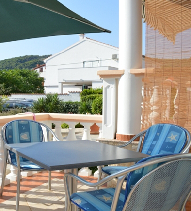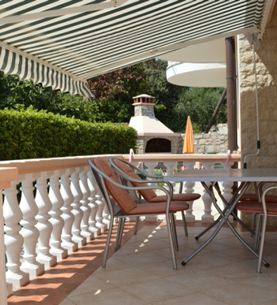 Svaki apartman ima vlastitu terasu sa sjedaćom garniturom i tendom/suncobranom te je uz svaki apartman osigurano parkirališno mjesto.. U dvorišnom dijelu objekta postoji mogućnost korištenja roštilja, vrtne sjenice, bazena i sunčališta te bicikla.